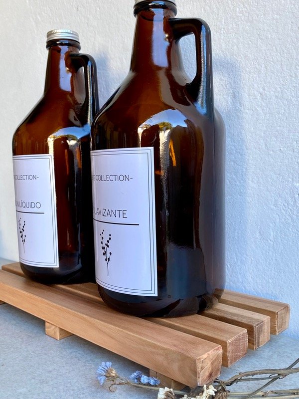 Growler 1900 ML de vidrio . Etiquetas resistente a líquidos