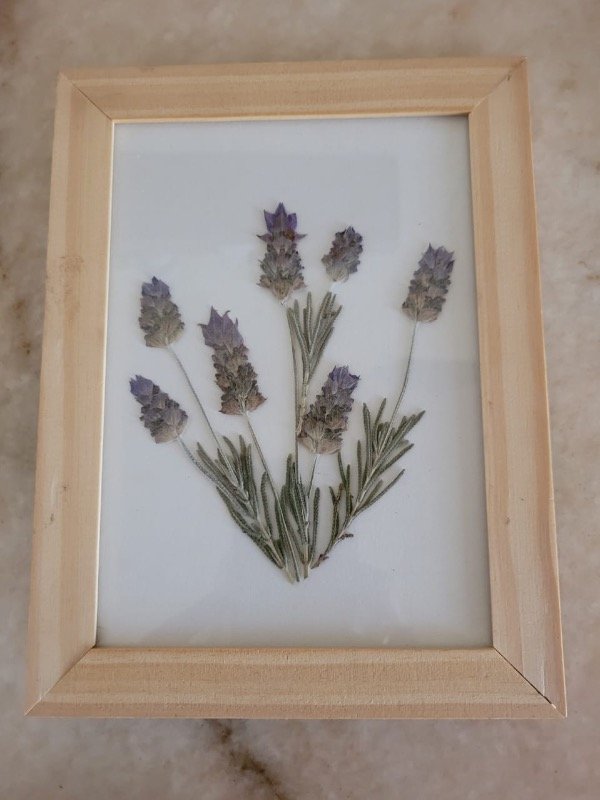 Cuadro porta retrato Marco de madera 15 x 21 lavandas prensadas