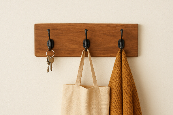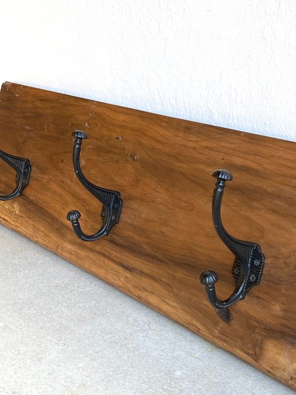 Perchero XXL realizado en madera dura laurel a 80 x 25 perchas de hierro fundición